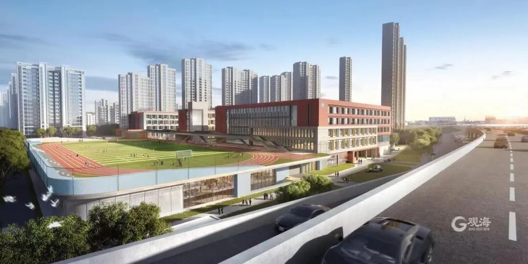 同德路小學位于市北區勁松四路以西、規劃同德路以北,規劃用地面積約20566平方米,總建筑面積29395平方米,規劃新建30班規模。該項目已于近期主體封頂,正在進行窗戶安裝、室內精裝修施工,計劃2023年6月竣工。從外觀看,同德路小學的教學樓整體造型呈現S形,充分利用了地塊空間,將學校分割成教學區域、活動區域。在該學校附近,青島第四實驗初中、同安路小學東校區、富源路小學潤和校區已于2021年開始陸續投入使用。