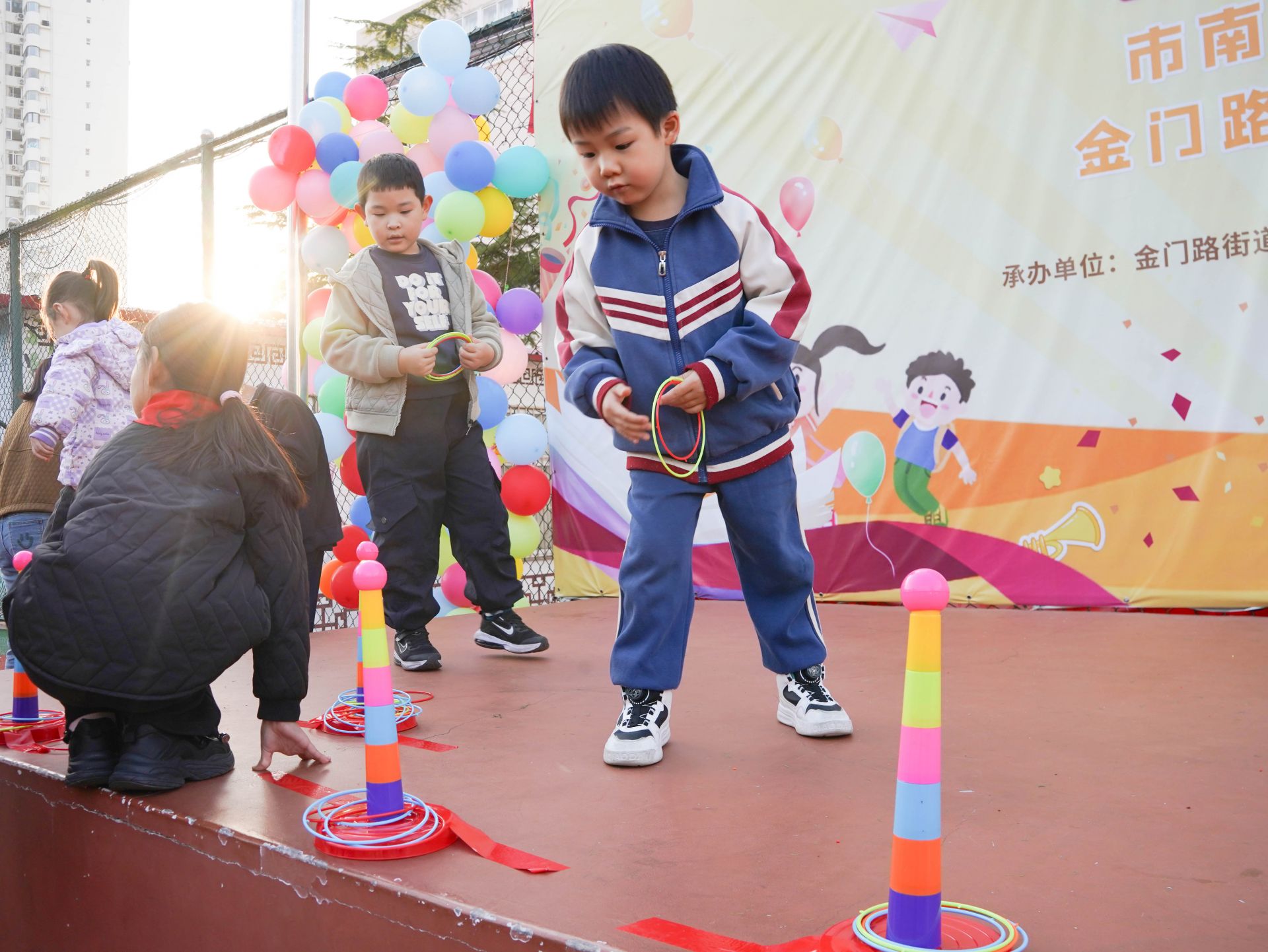 趣味游戲同樣十分受小朋友們的喜歡。“快樂套圈”“手腳并用”“車輪滾滾”等九個游戲項目讓孩子們在運動中感受到協作與競爭的樂趣。活動現場笑聲不斷,家長與孩子共同參與,親密互動,營造出溫馨和諧的社區氛圍。