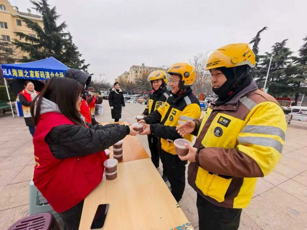 1月26日,大堯社區聯合市南區星河志愿者服務隊共同開展臘八節暖冬主題活動。工作人員們將一碗碗精心熬制的臘八粥和豆包送到快遞員、外賣員及獨居老人手中,在寒冬中傳遞著傳統節日的溫暖與祝福。