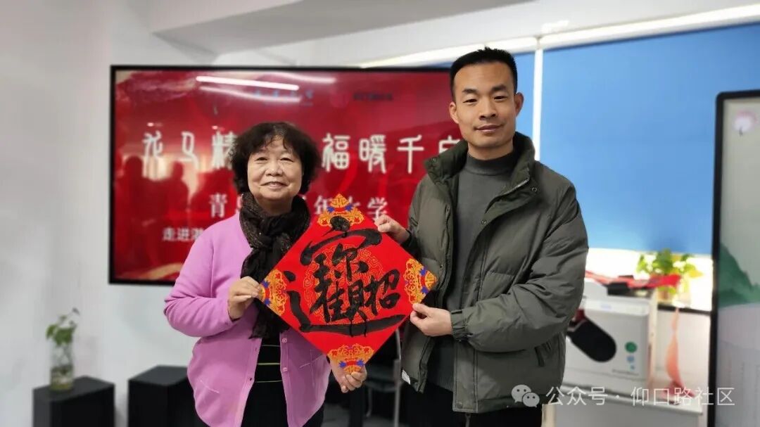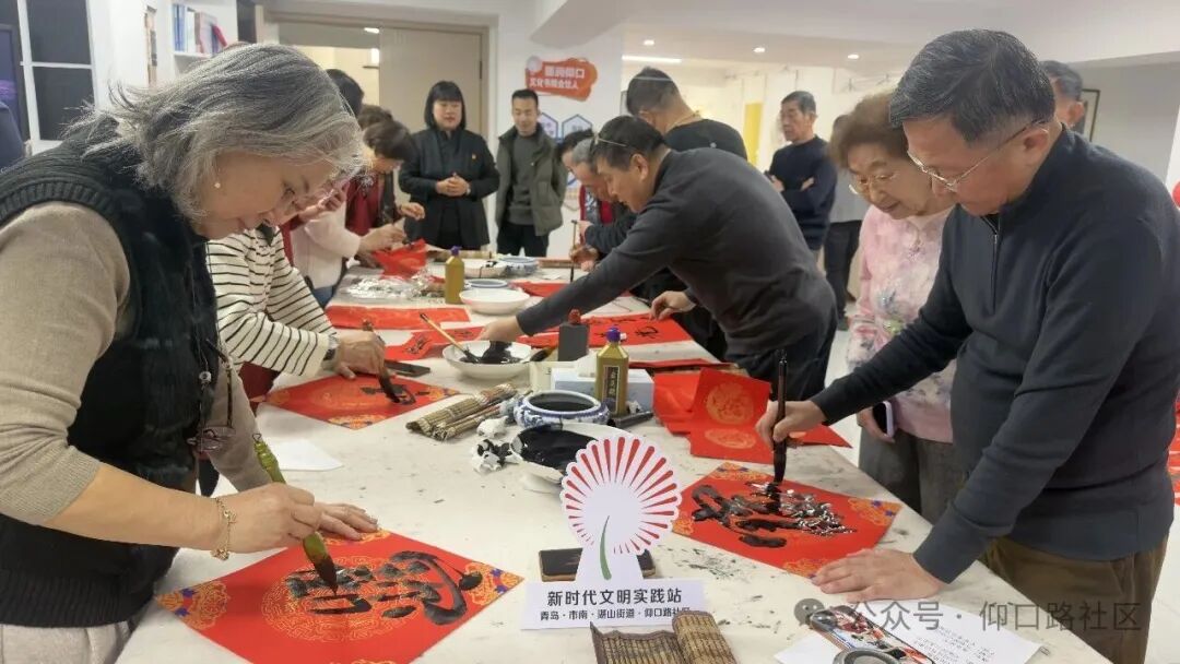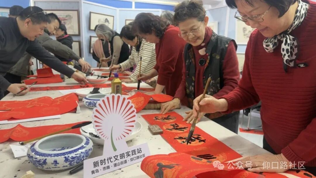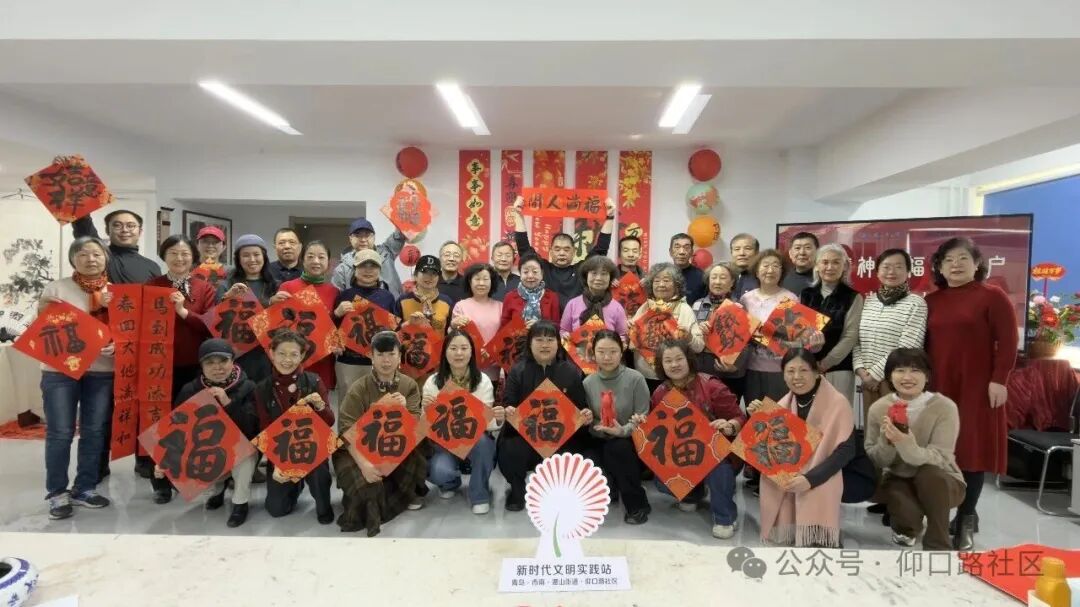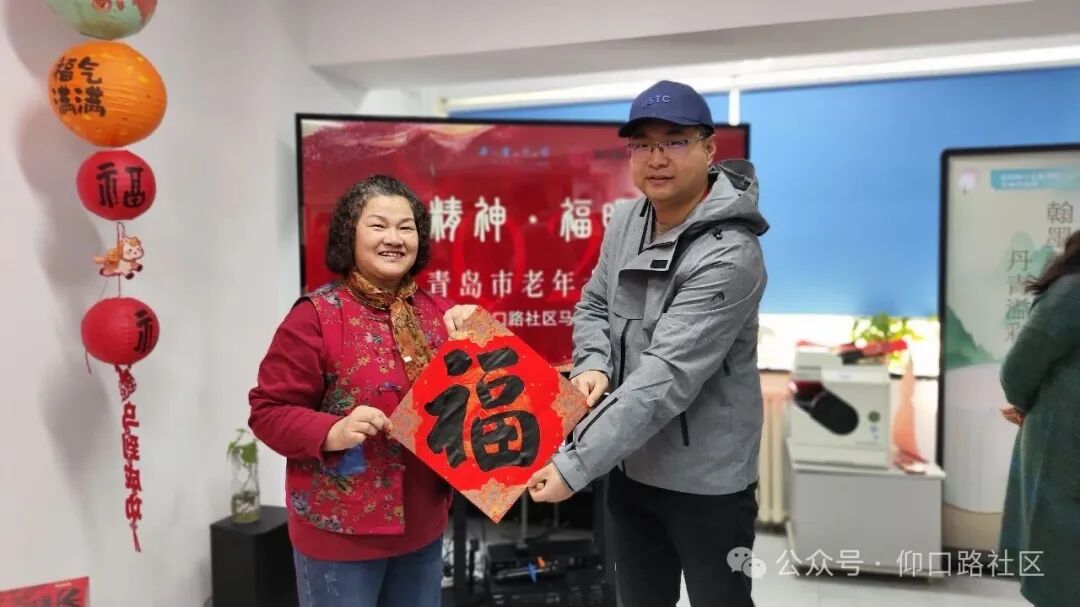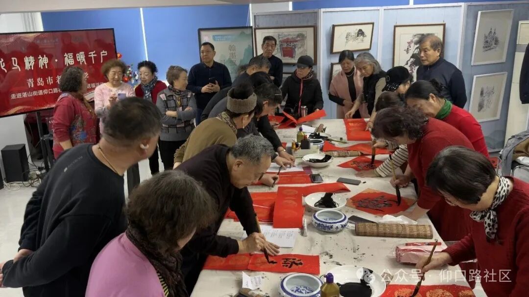 2月3日,仰口路社區“文化書院”聯合共建單位青島市老年大學,在社區二樓活動室舉辦“龍馬精神·福暖千戶”---“我們的節日·春節”送福進萬家主題活動。青島市老年大學教研處副處長郭松帶隊書法班7位資深書法家現場揮毫潑墨,為社區居民書寫“福”字和春聯400余幅,將濃濃年意與真摯祝福送到群眾“家門口”。