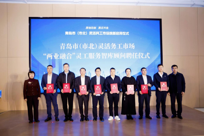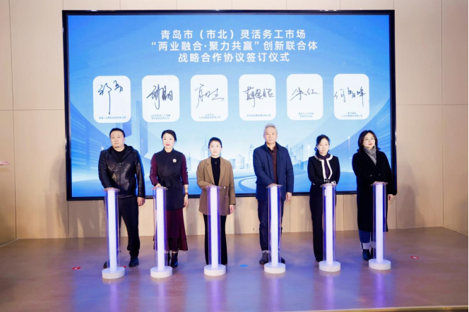 啟用儀式上,市場同步構(gòu)建了支撐長遠(yuǎn)發(fā)展的“智慧內(nèi)核”與“協(xié)作網(wǎng)絡(luò)”。八位來自人力資源及產(chǎn)業(yè)經(jīng)濟(jì)領(lǐng)域的專家受聘成為“兩業(yè)融合”靈工服務(wù)智庫顧問并進(jìn)行了座談交流;青島市(市北)就業(yè)友好型發(fā)展研究中心正式揭牌,將成為政策研究的“瞭望塔”與權(quán)益保障的“守護(hù)站”;市場運(yùn)營方還與多家協(xié)會(huì)、重點(diǎn)企業(yè)簽署了創(chuàng)新聯(lián)合體協(xié)議,推動(dòng)人才鏈與產(chǎn)業(yè)鏈深度融合。