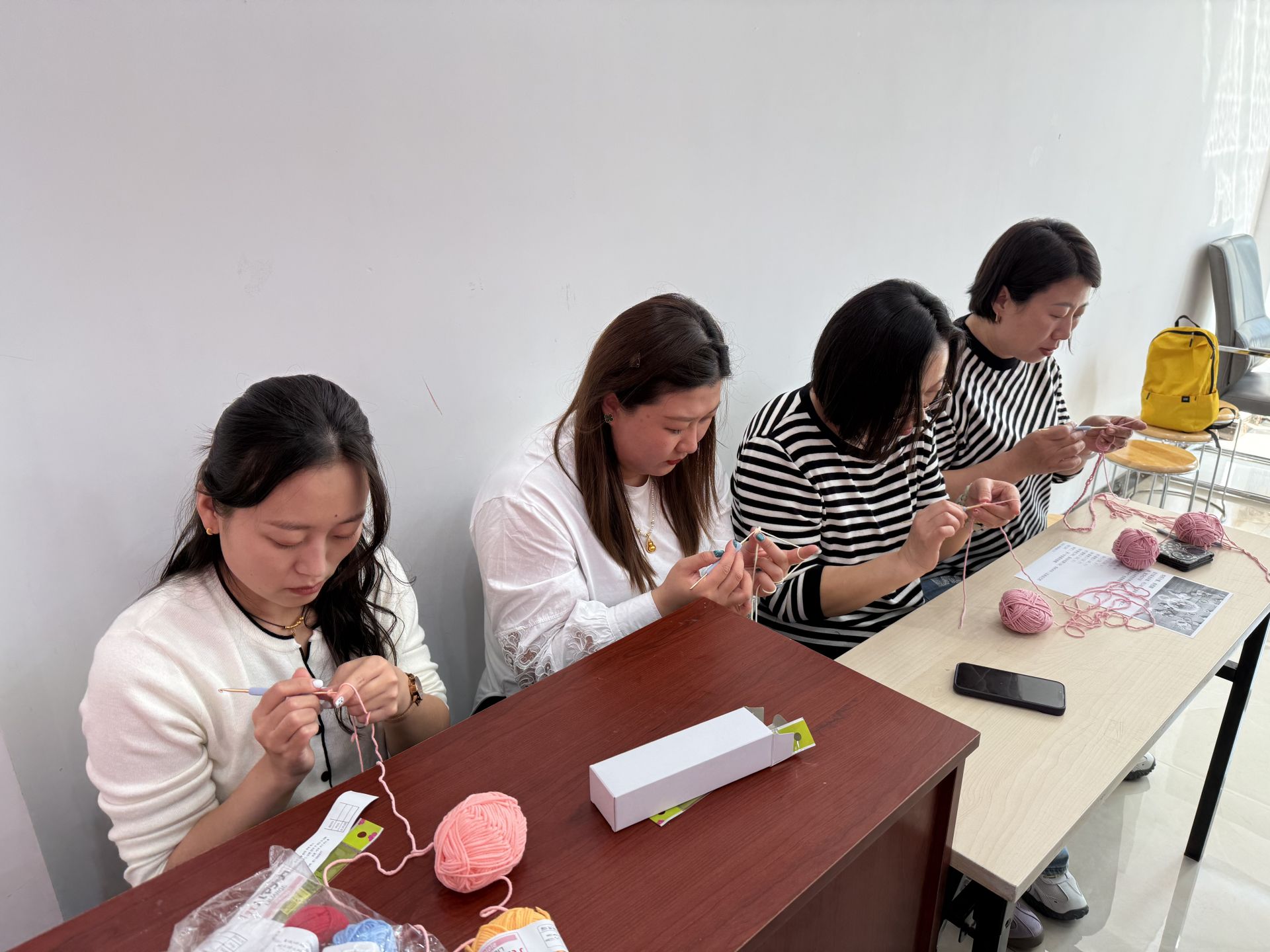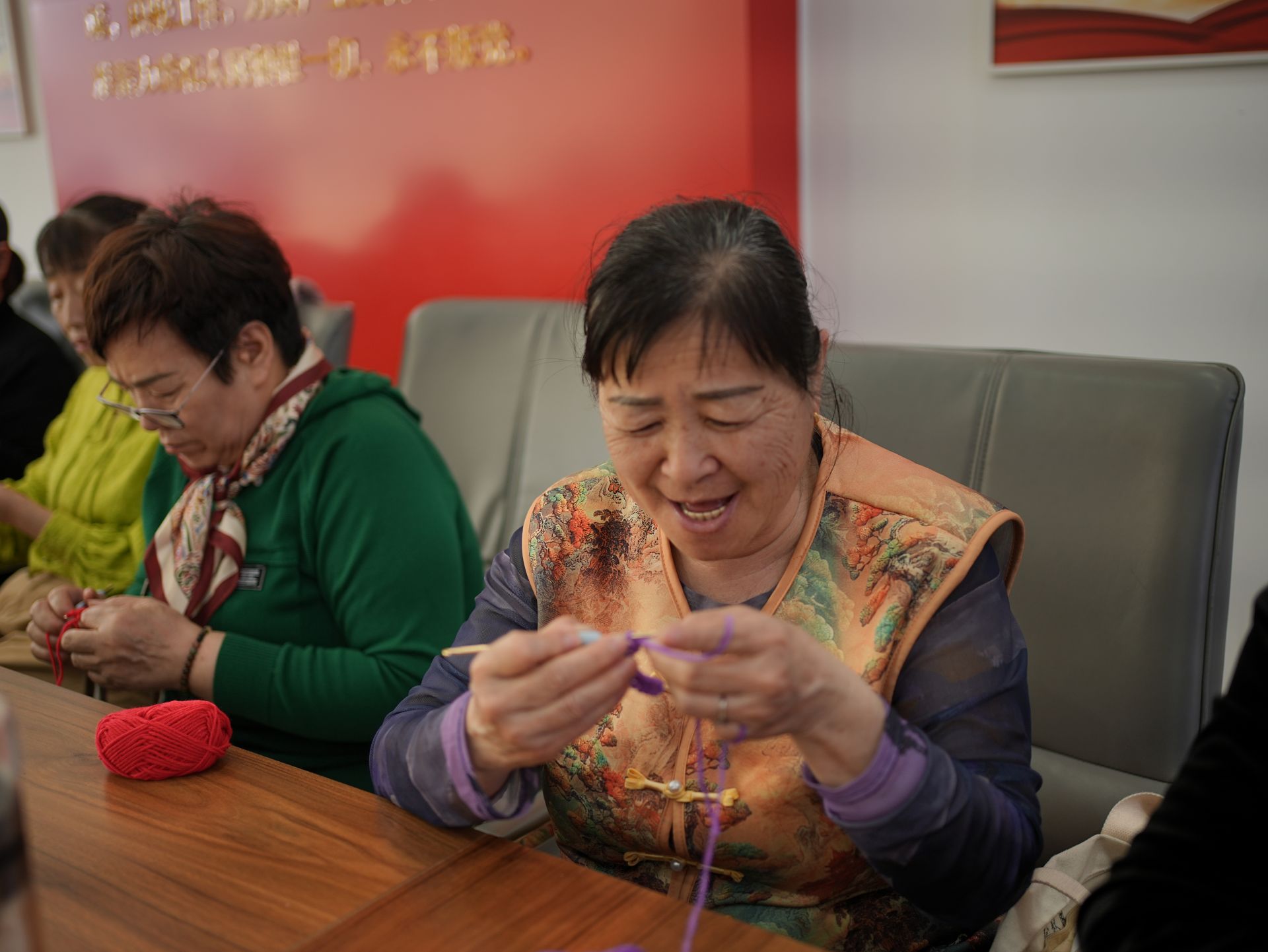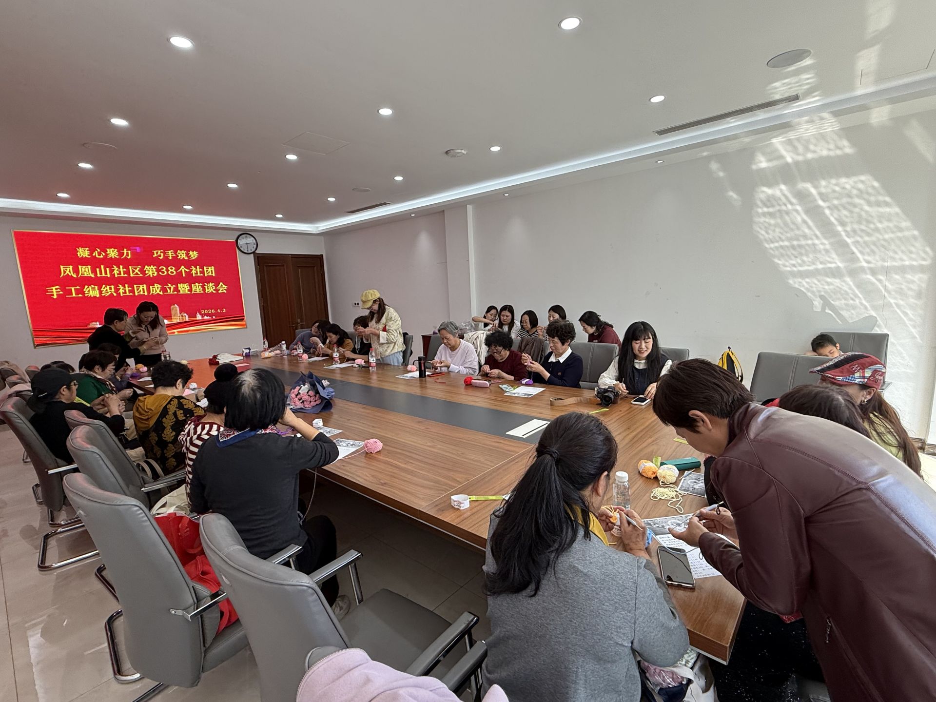 “先繞線,再起針,對,就這樣……”4月2日下午的一個暖陽午后,城陽區城陽街道鳳凰山社區活動室里笑聲不斷。三十多位居民圍坐長桌旁,手中鉤針穿梭,各色毛線團在指尖跳躍——社區第38支社團“巧手編織社”正式開課了。