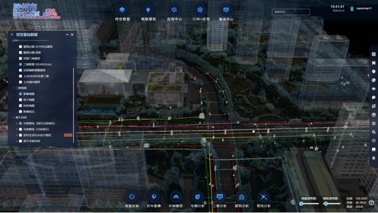 膠州市CIM平臺以“筑基”為首要任務,匯聚融合了全市域范圍內的時空信息、建筑BIM模型、基礎設施、城市運行等多源異構數據,摸清了城市的“骨骼肌理”,為“數字膠州”提供了唯一、權威、精準的數字空間底座。這一“數字底座”實現了從地面到地下、從歷史到未來、從陸地到水域、從靜態到動態的城市全貌精細化呈現,在數字世界為膠州打造了一個實時、鮮活、可交互的“孿生體”,使跨層級、跨地域、跨系統的數據共享與業務協同成為可能。平臺以數字住建為支點,全面服務數字城市建設,為膠州城市管理、應急指揮、市政運維等提供統一數字支撐。