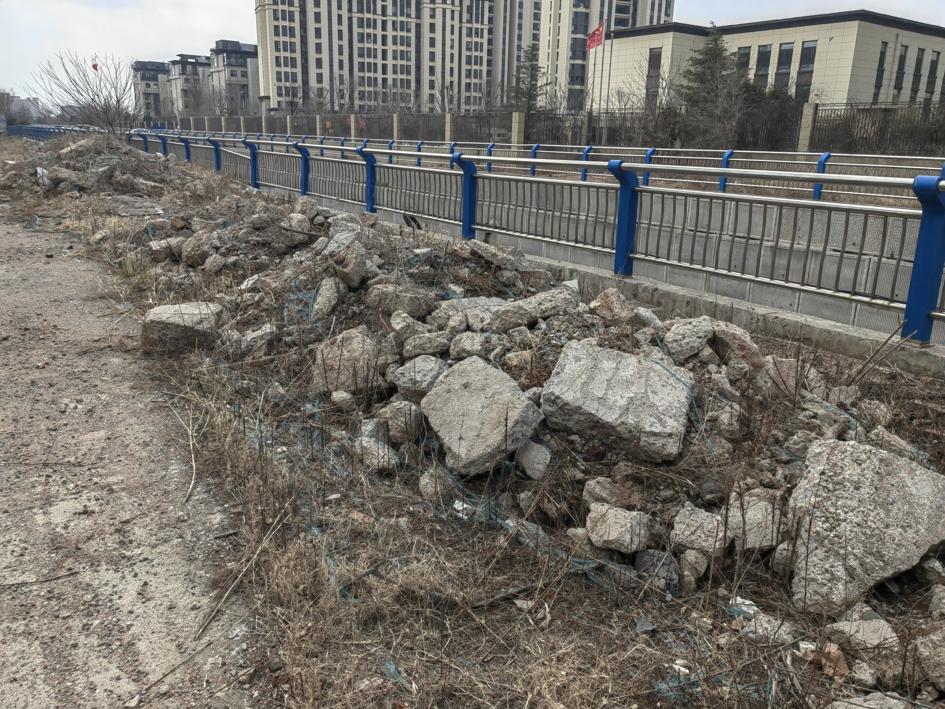 此前,記者在現(xiàn)場(chǎng)看到,宏通路幼兒園東側(cè)為一條景觀河,河?xùn)|岸空地存有多堆建筑垃圾,這些垃圾多為混凝土塊。“垃圾堆和我們小區(qū)僅一墻之隔,希望相關(guān)部門盡快處理。”市民孫先生說(shuō)。