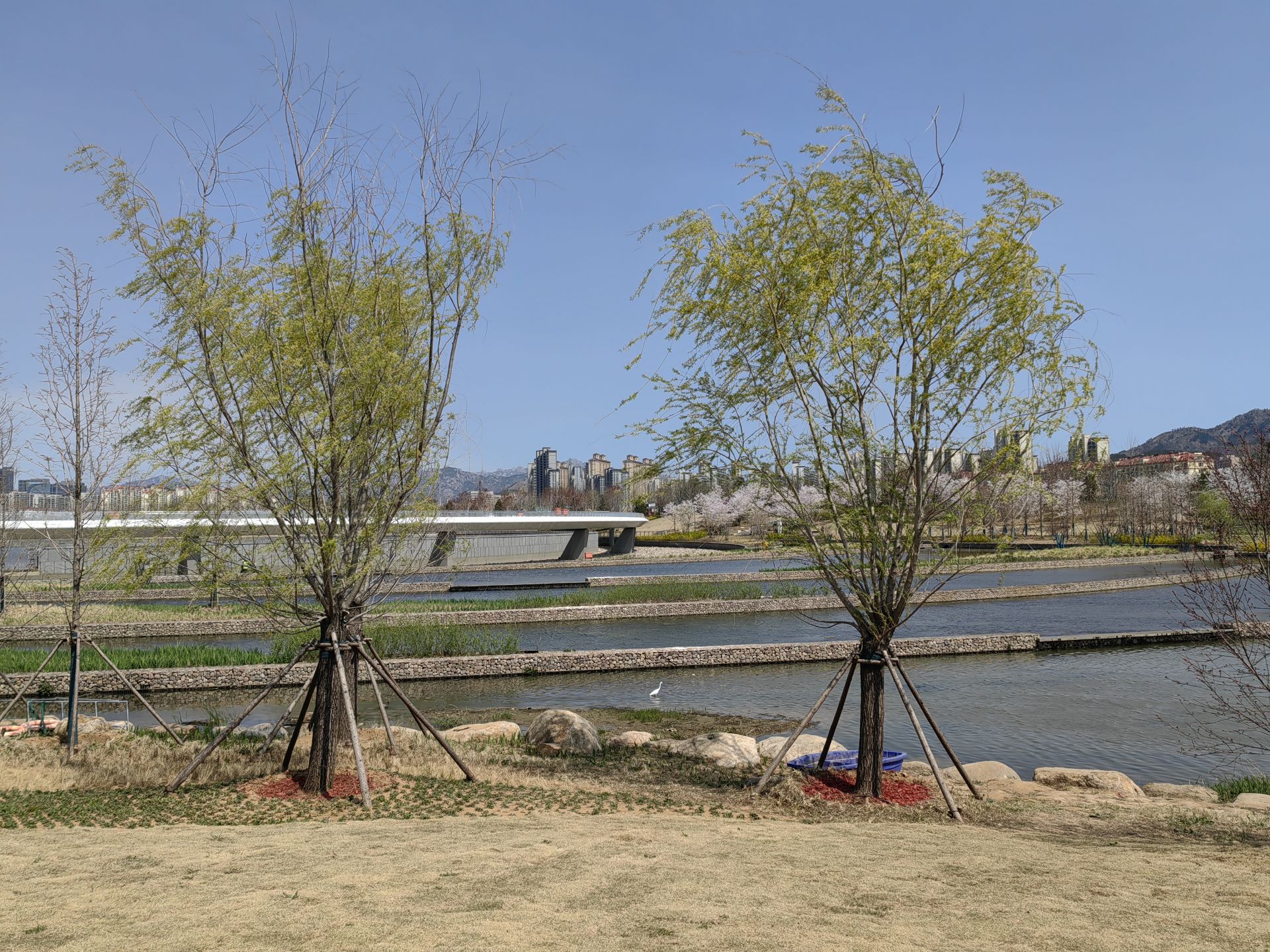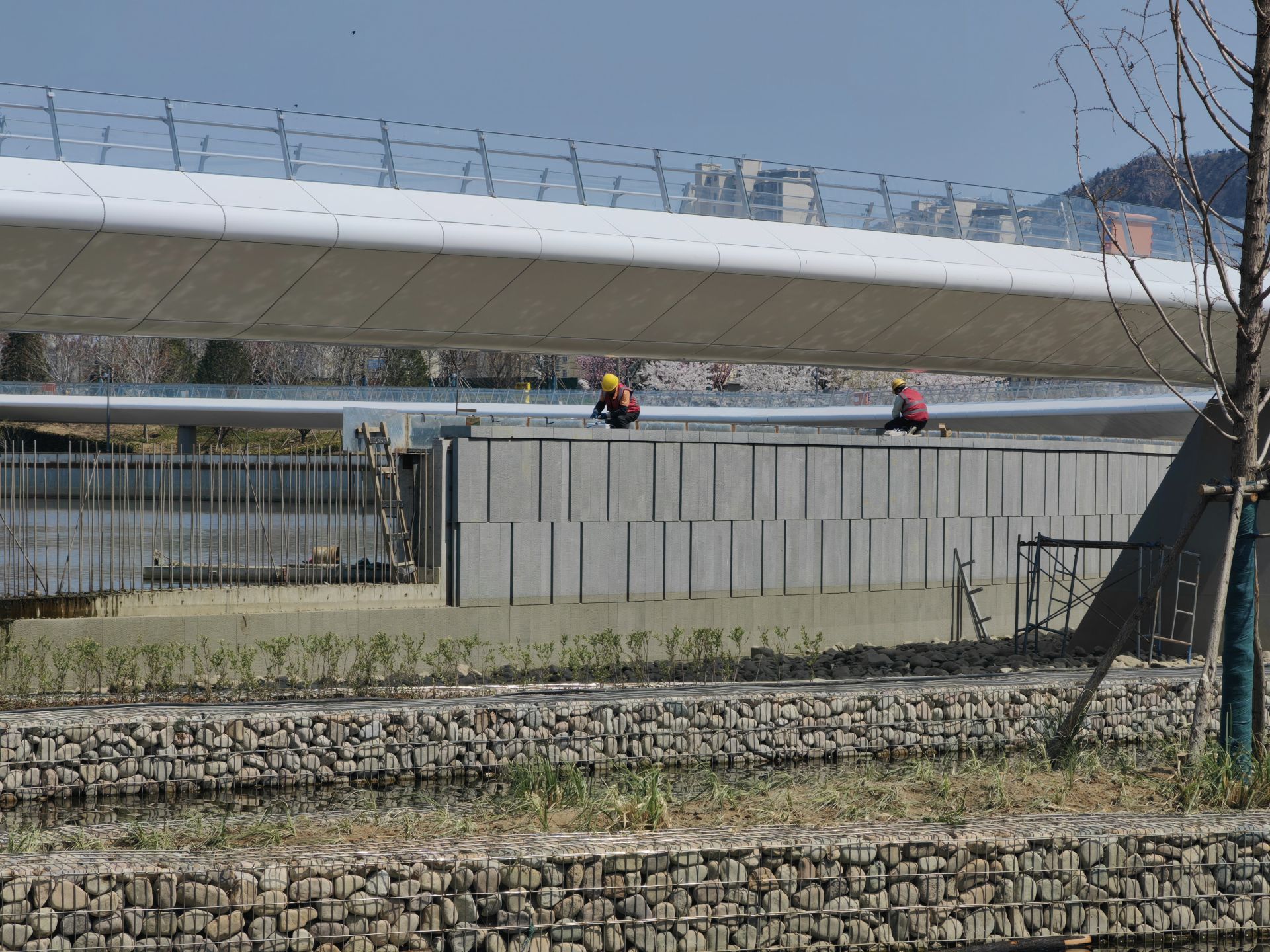 記者在現場看到,雄安路以西的張村河生態公園已基本完工,各類綠植陸續返青,不少市民在公園散步休閑,以東河段還有部分項目仍在施工,現場圍擋尚未拆除,不少工人在工地內忙碌。