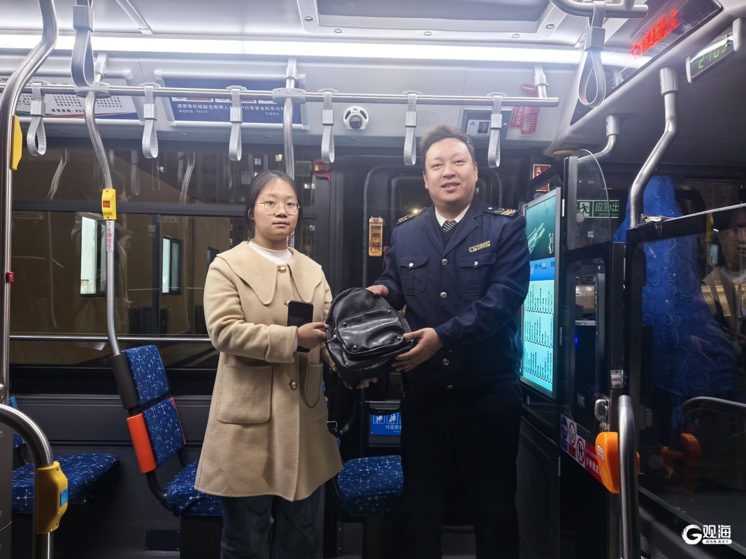 此時,該車仍在執行運營任務。值班人員通過系統密切關注車輛動態,待車輛安全返回場站后,他立即與當班駕駛員一同登車仔細查找。最終,在車廂后排一座位上發現了那只被遺落的背包。經現場清點,包內現金、證件及個人物品完好無損。
