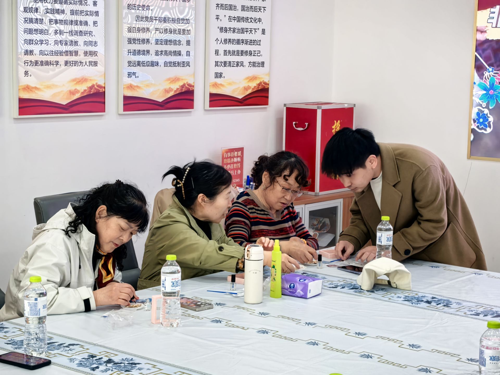 活動現場,社區工作人員提前精心布置場地,準備好制作胸針所需的各類材料,為活動順利開展做好充足準備?;顒娱_始后,工作人員向到場居民詳細介紹了本次非遺胸針制作的文化內涵、制作技巧與注意事項,耐心講解每一個制作步驟,從材料搭配、造型設計到細節粘貼、成品定型,一步步細致演示,讓零基礎的居民也能快速上手。