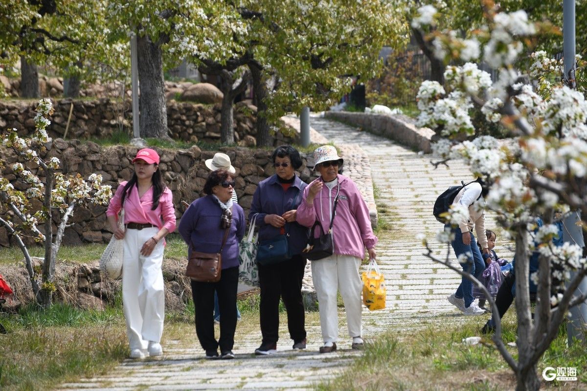 據梨園工作人員介紹,許多人專程趕來與梨花做“季節性的告別”。梨花謝了春紅,但根深葉茂,待來年東風再起,雪海重逢。(青島日報/觀海新聞記者 王雷 文/圖)